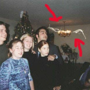 “A casa onde cresci era certamente mal-assombrada. Minha mãe tirou essas fotos dos meus irmãos e de mim no Natal. Dá para ver alguma coisa entrando e saindo do lustre. Aparece em só uma das fotos”.